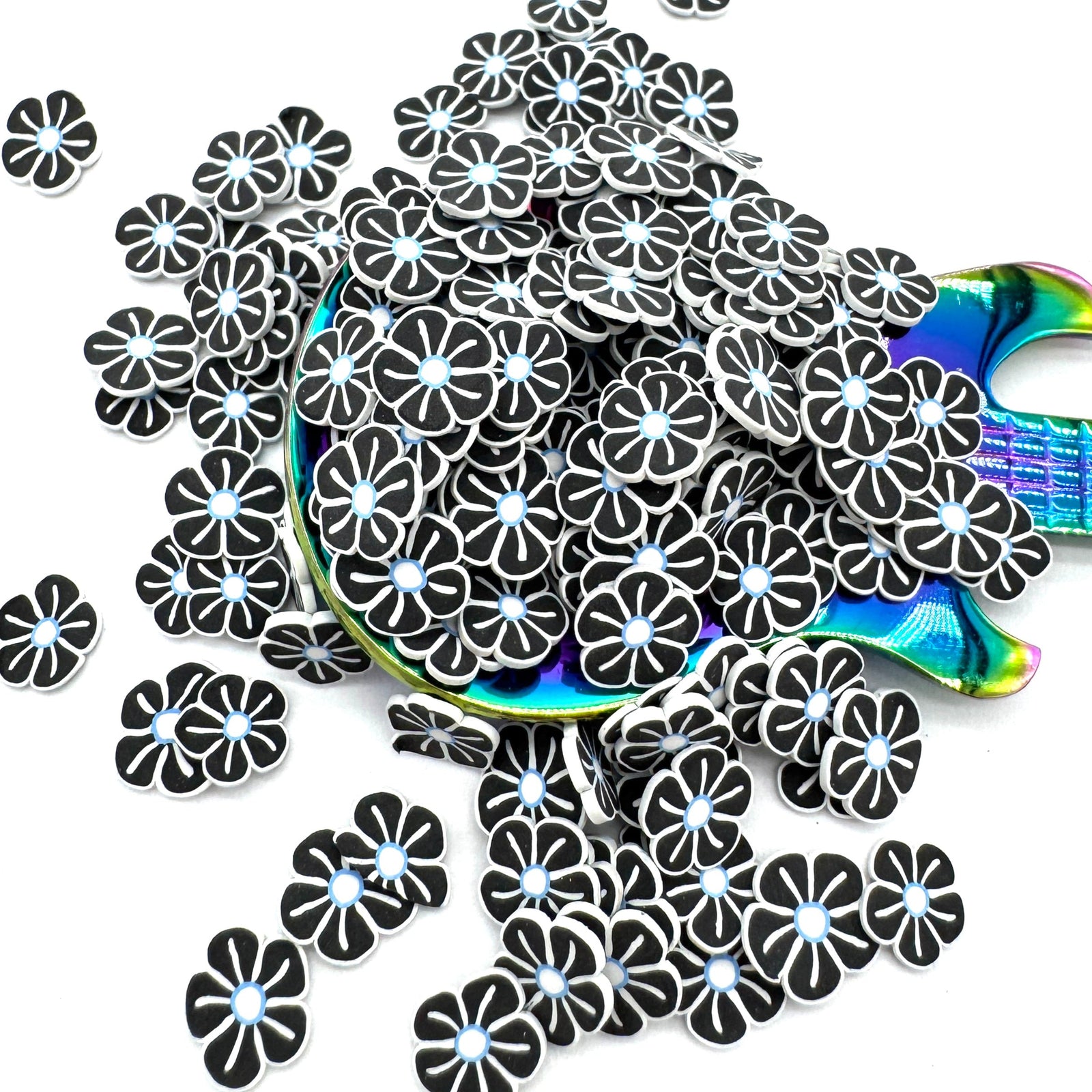 Black & White Flowers Polymer Clay Pieces