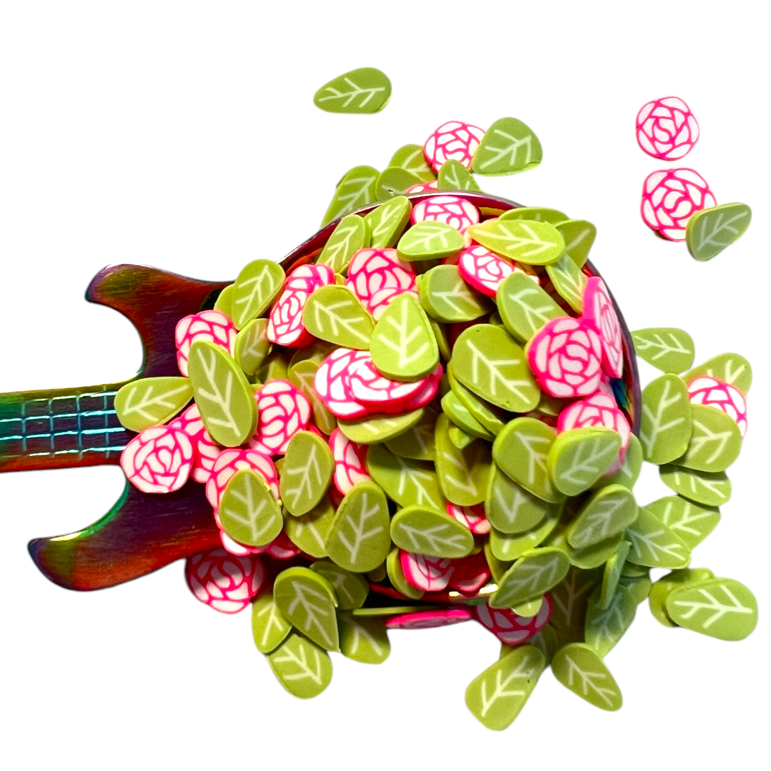 Pink Roses and Leaves Polymer Clay Pieces